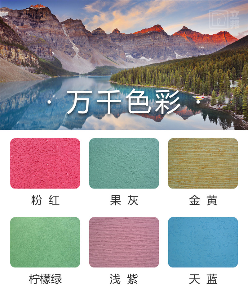 為滿足設(shè)計(jì)想象力的自由發(fā)揮,立邦以自然風(fēng)物、磚石紋理、世界掠影、萬千色彩為效果靈感來源,結(jié)合不同建筑風(fēng)格效果需求推出外墻砂膠體系“美型流行色”。
