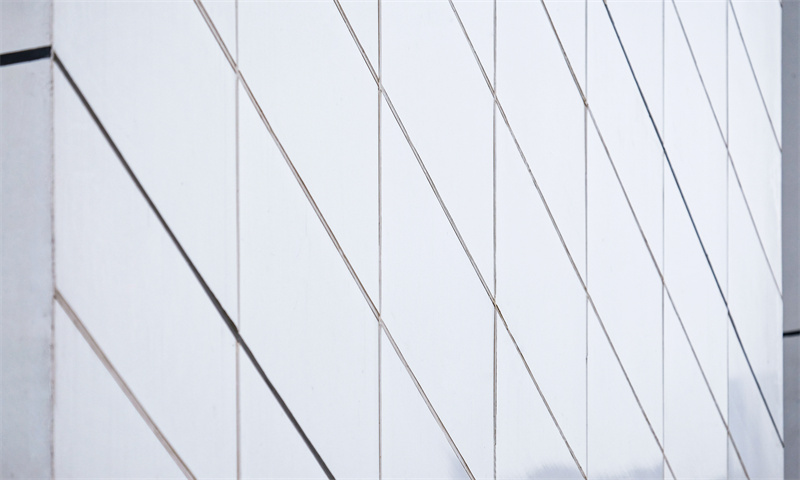 此外,由于鋼結(jié)構(gòu)受輕微晃動(dòng)的影響易產(chǎn)生位移,為減少錯(cuò)位帶歪板材引發(fā)脫落風(fēng)險(xiǎn),在一體板的排布上,立邦工程解決方案團(tuán)隊(duì)特地設(shè)置了一組略小于標(biāo)準(zhǔn)尺寸的“調(diào)節(jié)板”,在每層之間分一層縫,打一層膠,為橫跨了兩層的結(jié)構(gòu)區(qū)域帶來安全牢固的整體結(jié)構(gòu)。