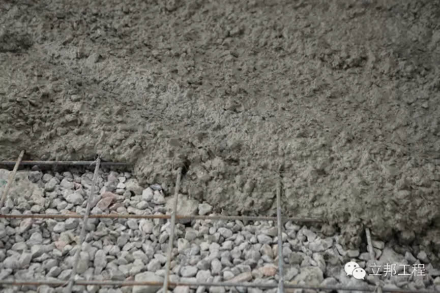攪拌站混合好的混凝土經(jīng)泵輸送攤鋪于碎石基底上,攤鋪速度應(yīng)適宜,人工快速輔助攤平。