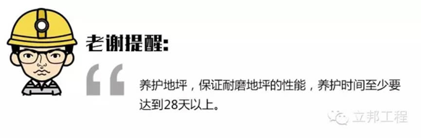在高效科學(xué)地完成施工流程之后,需要用28天以上的時間養(yǎng)護地坪。