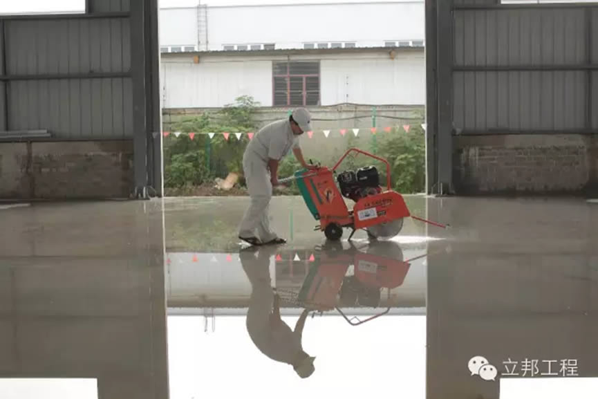 耐磨地坪機械化施工第八步:切割伸縮縫