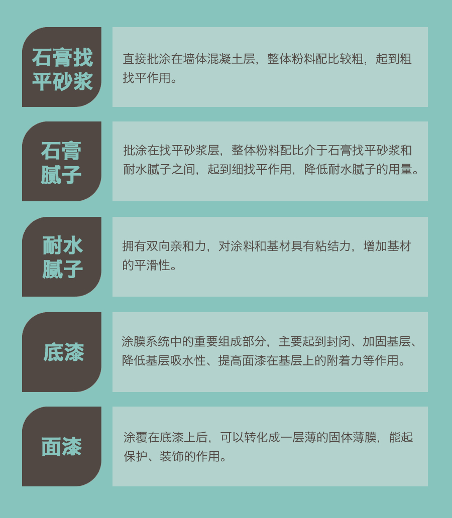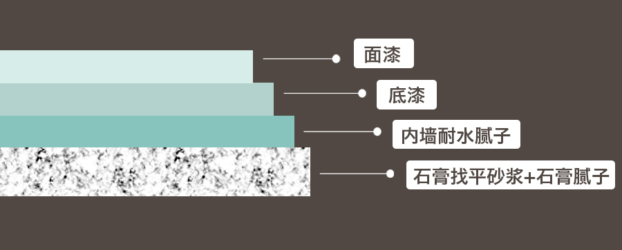 目前國內(nèi)的內(nèi)墻配套體系普遍采用“石膏基找平砂漿+石膏膩子+耐水膩子+底漆+面漆”的組合。 一般來說,建筑商交付時完成石膏基找平砂漿層,“石膏膩子+耐水膩子+底漆+面漆”屬于裝飾工程。