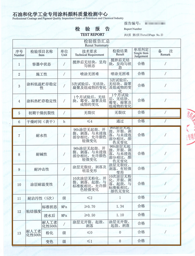 重要提示:檢測(cè)報(bào)告中的數(shù)據(jù)和涂膜樣板多來(lái)自實(shí)驗(yàn)室環(huán)境測(cè)試,檢測(cè)結(jié)論僅供參考。在實(shí)際應(yīng)用時(shí)應(yīng)以自然施工環(huán)境為考量因素,且務(wù)必嚴(yán)格按照施工流程和說(shuō)明使用產(chǎn)品。