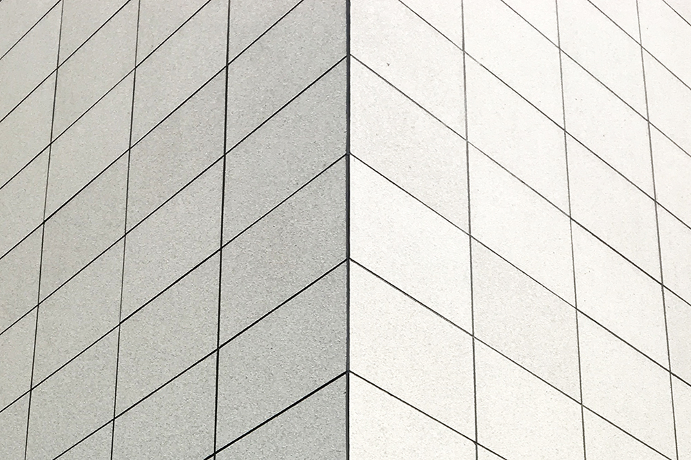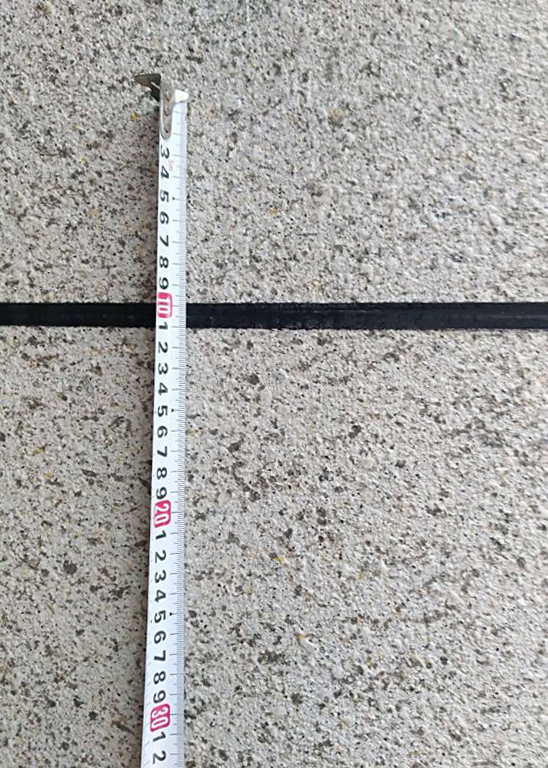 施工前按照設(shè)計要求提前做好排版,確定分格線的寬度,在施工時嚴(yán)格參照排版設(shè)計圖的分格方案,彈出每塊板的安裝控制線。為保證施工時分格縫整齊有趣,九悅廣場施工同樣沿用了一體板施工的老謝秘招,在安裝,為防止塞縫墊片放置面不同造成分格縫間距大小差異,將所有的塞縫墊片放置面均采用了同一個方向和位置,保證墊片的高度保持在8mm的距離。我們隨機對現(xiàn)場的外墻進行了測量,無論橫線還是豎線,膠縫的距離都是10mm。