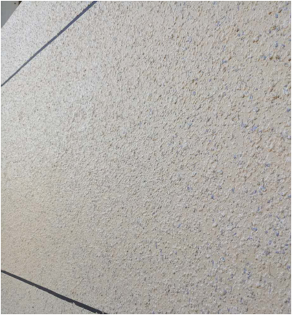 體現(xiàn)麻砂效果的砂粒均勻完整地包裹在巖彩顆粒色點(diǎn)內(nèi),只要色點(diǎn)噴涂均勻,表面的麻砂質(zhì)感效果也比較均勻,而色點(diǎn)的均勻度可以直接在噴涂階段可見,從而直接規(guī)避了發(fā)花的風(fēng)險。同時多彩噴涂可通過噴槍旋鈕進(jìn)行量化及標(biāo)準(zhǔn)化控制,避免人為和設(shè)備差異,最終最大限度的保證完工效果。