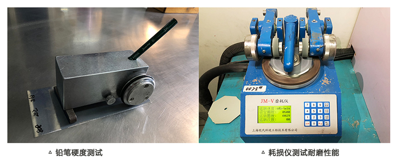 在立邦水性環(huán)氧停車場專用地坪系統(tǒng)中,對行車道和坡道分別采用了拋砂處理,我們對拋砂面的水性環(huán)氧地坪分別進(jìn)行了磨損實驗以及鉛筆硬度實驗,砂面耐磨性良好,整體耐磨性符合要求,漆膜硬度達(dá)到2H,耐劃傷性能高于國家標(biāo)準(zhǔn)。
