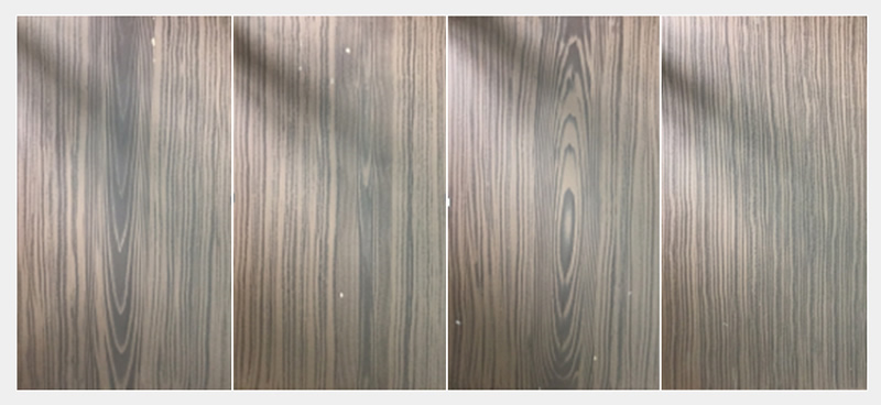 經(jīng)過十幾次的試樣,在確定了木紋飾面層紋路及板材顏色后,最終確認(rèn)以4種母版為基礎(chǔ),經(jīng)過不同組合形成其它超大規(guī)格的樣式。