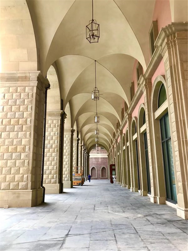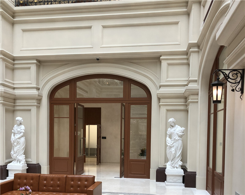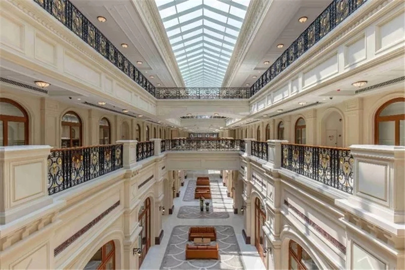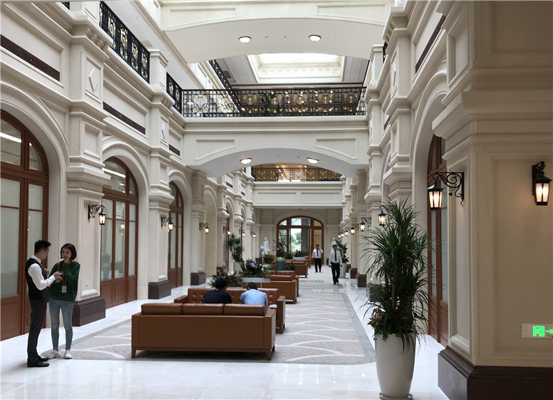 走進(jìn)內(nèi)部,公共區(qū)域、背景墻、樓梯間、咖啡館、餐廳等多處采用了立邦內(nèi)墻藝術(shù)質(zhì)感砂膠漆體系,噴砂、平搓、斑紋等十幾種效果交相輝映,充分詮釋了歐式藝術(shù)風(fēng)格。