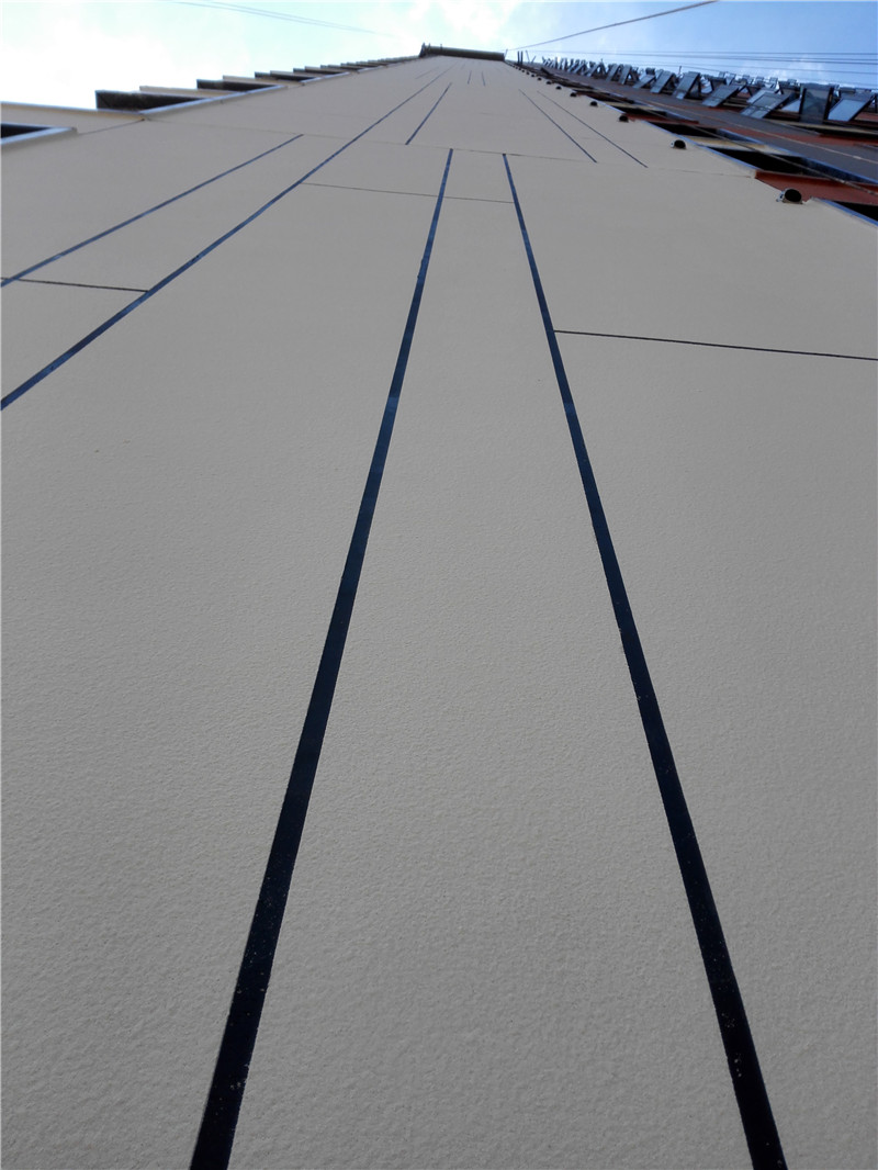 在外墻真石漆產(chǎn)品的標(biāo)準(zhǔn)上,華為提出的要求,是要耐人工老化性達(dá)到1000小時(shí),相當(dāng)于真石漆標(biāo)準(zhǔn)中對耐老化要求的2倍。為了達(dá)到“超長待機(jī)”高耐候要求,此次外墻使用的立邦高端柔性硅丙真石漆產(chǎn)品硅含量要求不低于5%(按GB/T23942-2009方法實(shí)測Si含量6.07%),實(shí)際耐老化能力達(dá)2000小時(shí)以上,同時(shí)具備50mm彎曲無裂紋的優(yōu)異柔韌性,且其環(huán)保指標(biāo)也達(dá)到十環(huán)認(rèn)證標(biāo)準(zhǔn)。