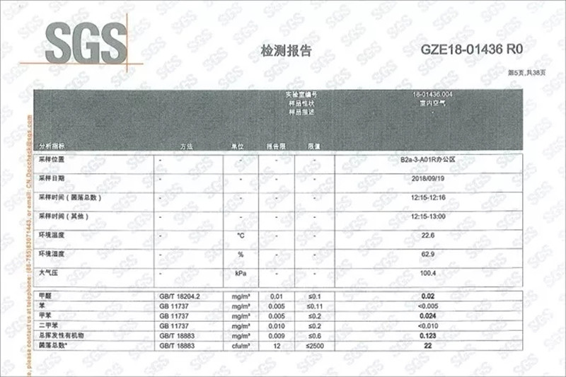 據(jù)華為介紹,在持續(xù)通風(fēng)三個月后,華為邀請國內(nèi)領(lǐng)先的空氣治理公司AY進(jìn)行了專業(yè)空氣凈化,并特邀全球領(lǐng)先的檢驗(yàn)、鑒定、測試、認(rèn)證機(jī)構(gòu)SGS對B2空氣質(zhì)量進(jìn)行全面檢測,結(jié)果全部達(dá)標(biāo)。所有檢測報(bào)告都將會在大樓內(nèi)公示,也可以通過手機(jī)下載檢測結(jié)果。