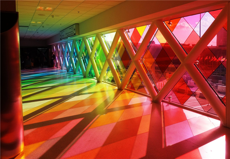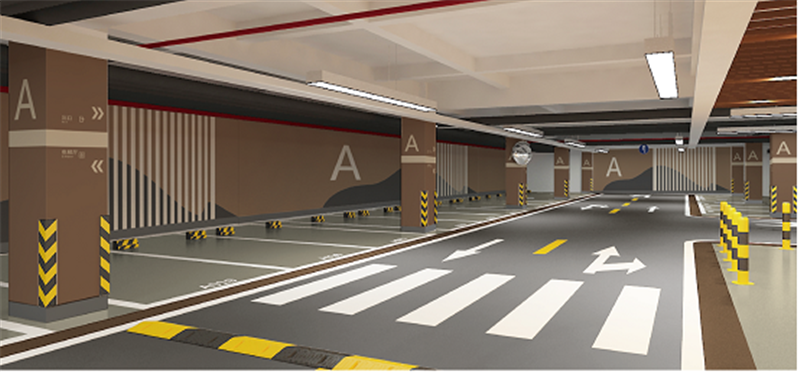 高飽和度的色彩給人一種鮮艷、明快的感覺,地下停車場因為半封閉的特性,在空間上常給人以壓抑、緊張的感覺,選用具有視覺刺激性的色彩結(jié)合活潑的圖案,能給人歡快、熱鬧的感覺,通常這些色彩應(yīng)用于幼兒園、兒童樂園、早教中心等多色的建筑地下停車場,選擇鮮亮、艷麗的顏色,能夠很好地體現(xiàn)出動感、活潑的建筑配套風(fēng)格。
