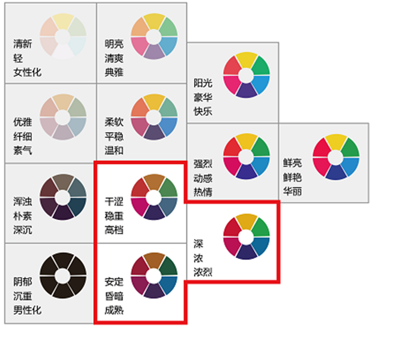風(fēng)格要點:運用低明度、中高飽和度的色彩呈現(xiàn)穩(wěn)重、高檔的感覺
