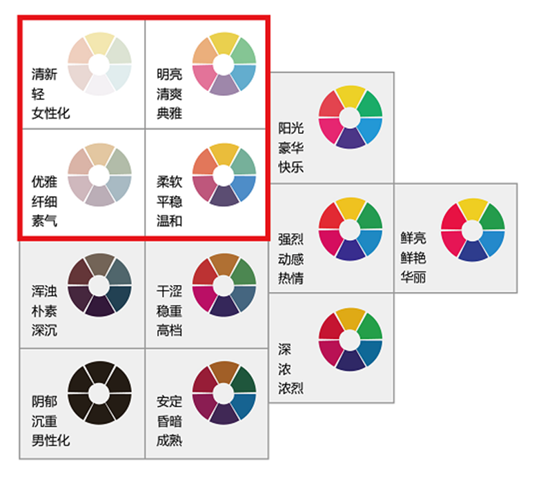 風(fēng)格要點:運用高明度、低飽和度的色彩呈現(xiàn)清新、素雅的感覺