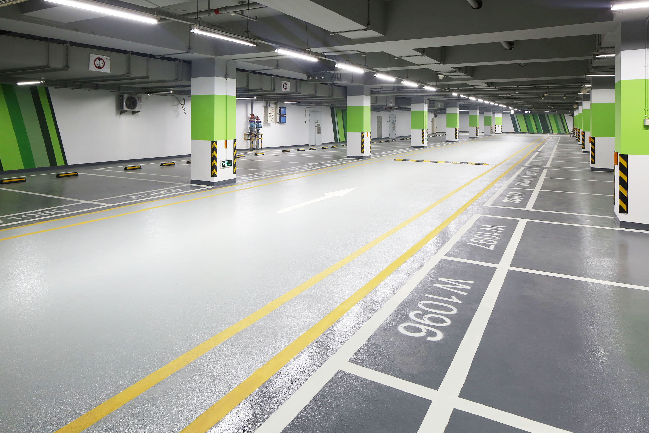 減少溶劑型產(chǎn)品的應(yīng)用,建設(shè)綠色環(huán)保的地下停車場可以選用耐磨抗壓、強韌抗裂的無溶劑彈性聚氨酯車庫專用地坪系統(tǒng)。