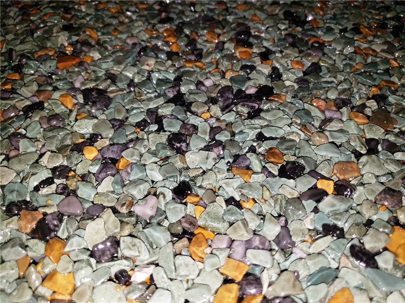 環(huán)保清漆包裹彩色石子的立邦環(huán)氧彩石地坪