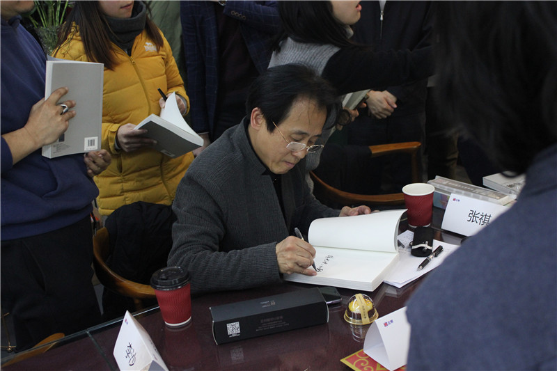 張祺先生在悅讀會(huì)上為熱心讀者扉頁(yè)簽名
