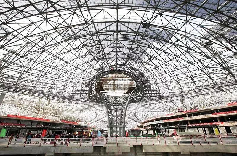 在建中的北京新機場航站樓內(nèi)部如同衛(wèi)星堡壘