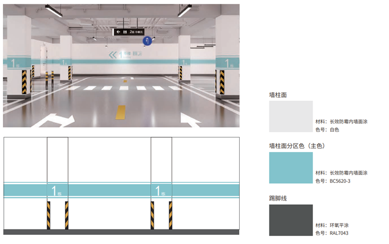 停車庫空間應(yīng)將防霉、耐燃作為墻面體系的重點(diǎn),地面空間的選擇則更需要突出耐磨、抗裂等具備長期運(yùn)營優(yōu)勢的地坪體系。