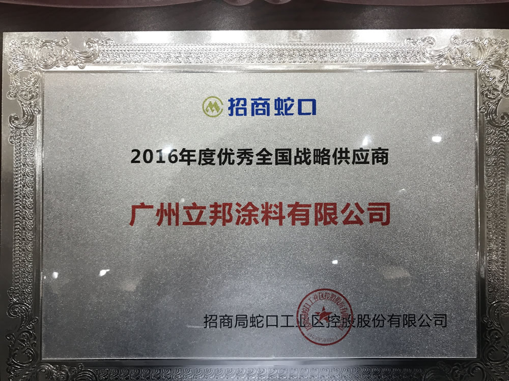 立邦獲招商蛇口2016年度優(yōu)秀全國(guó)戰(zhàn)略供應(yīng)商榮譽(yù)稱號(hào)