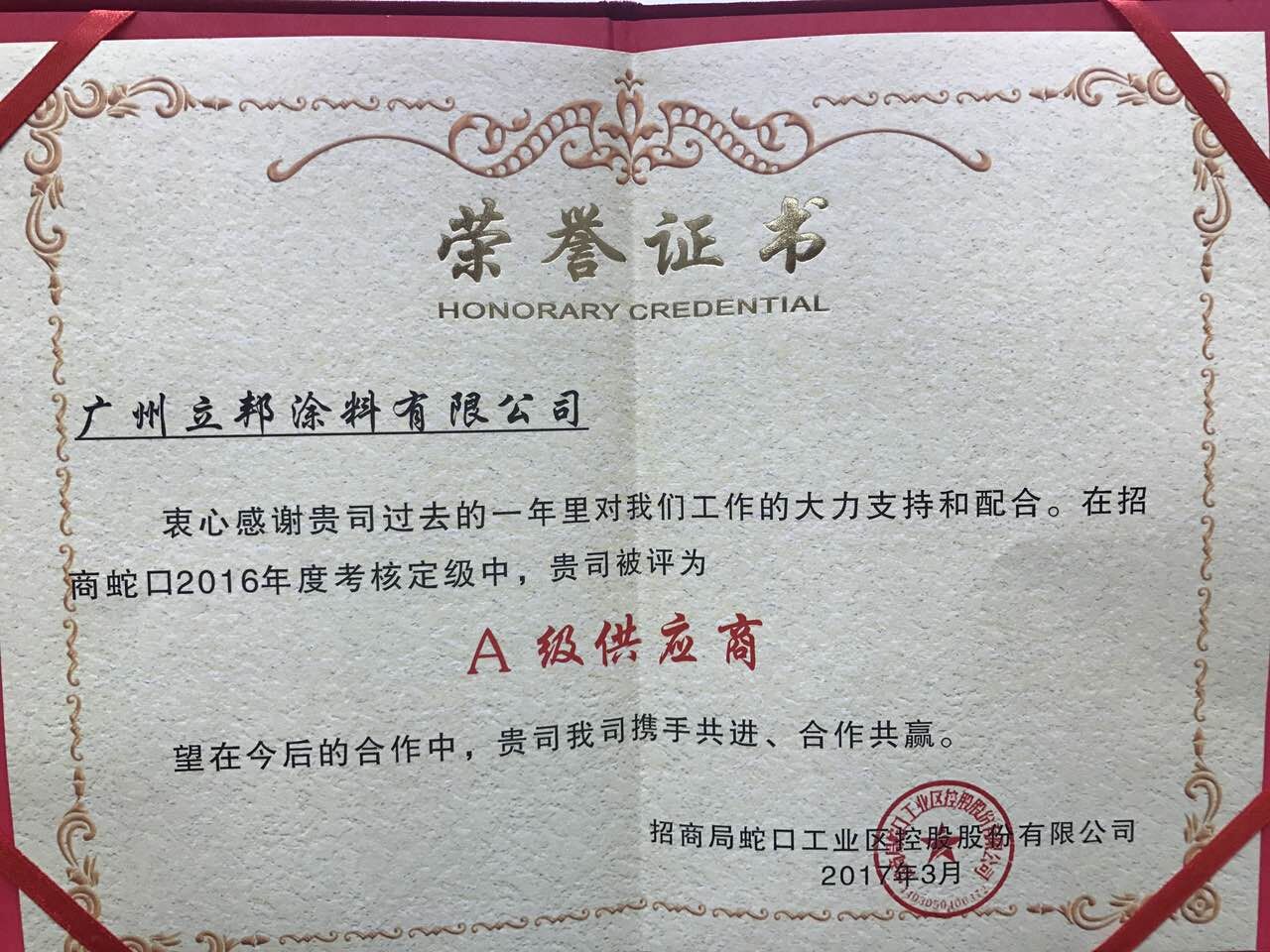 立邦入選招商蛇口A級(jí)供應(yīng)商