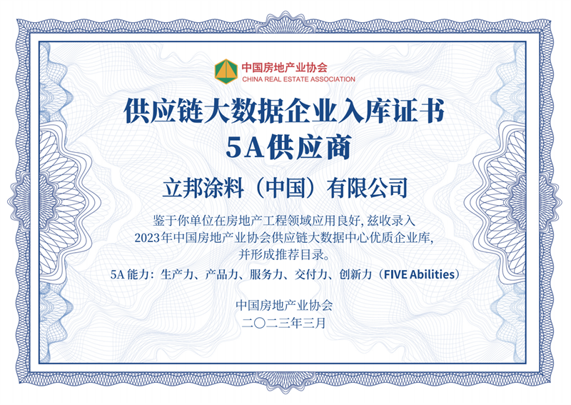 作為中國(guó)房地產(chǎn)業(yè)協(xié)會(huì)供應(yīng)鏈大數(shù)據(jù)中心 “5A供應(yīng)商” 入庫(kù)企業(yè)(5A,即生產(chǎn)力、產(chǎn)品力、服務(wù)力、交付力、創(chuàng)新力,FIVE ABILITIES),立邦自2012年首獲房企500強(qiáng)首選冠軍至今,已憑借深厚的綜合實(shí)力連續(xù)12年雄踞涂料大類(全品類)行業(yè)第一。