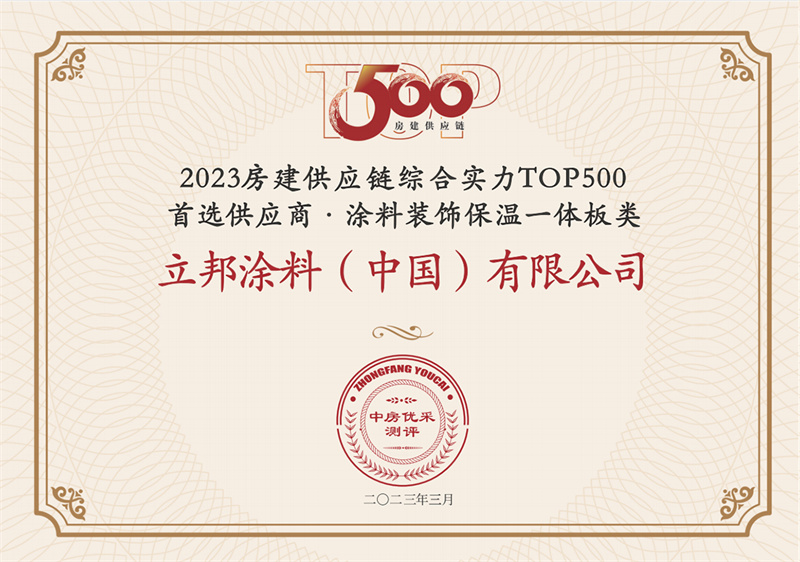 立邦在連續(xù)12年蟬聯(lián)房建供應(yīng)鏈企業(yè)綜合實(shí)力TOP500涂料大類(全品類)首選供應(yīng)商第一的同時(shí),也在砂漿和粉末涂料大類榜單中蟬聯(lián)奪冠,并強(qiáng)勢(shì)上榜保溫大類榜單獲得亞軍排名。