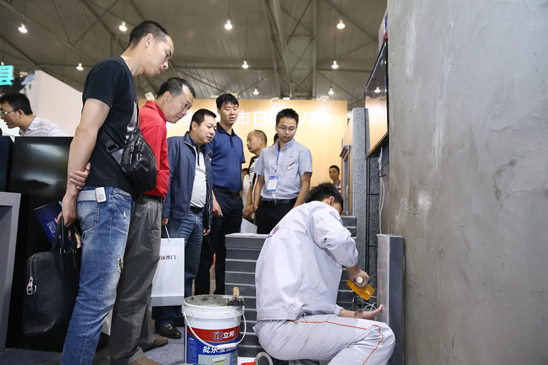 住博會參展期間,立邦展位還特地開設(shè)了立邦實驗室,為來賓現(xiàn)場講解立邦一體板性能及施工步驟。