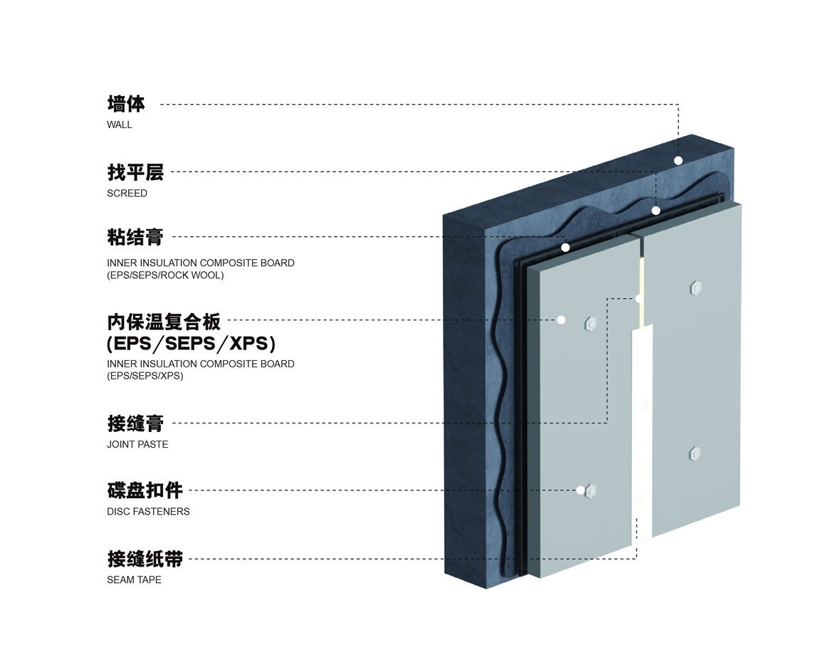 立邦安墻寶復(fù)合板外墻內(nèi)保溫系統(tǒng),是置于建筑物外墻內(nèi)側(cè)的保溫及面層材料一體化產(chǎn)品,由立邦安墻寶外墻內(nèi)保溫復(fù)合板、粘結(jié)材料、錨固件、嵌縫材料、接縫帶和飾面層等組成。本系統(tǒng)固定于外墻基層墻體內(nèi)側(cè),現(xiàn)場采用粘錨結(jié)合方式進(jìn)行安裝施工。該系統(tǒng)受使用環(huán)境影響較小,不受天氣影響,室內(nèi)施工簡便,系統(tǒng)抗沖擊性能優(yōu)異,產(chǎn)品綠色環(huán)保,安全性好。