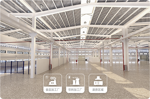 中央廚房、酒店后線區(qū)等;冷庫(kù)、重載工廠、化工廠、醫(yī)藥廠等;