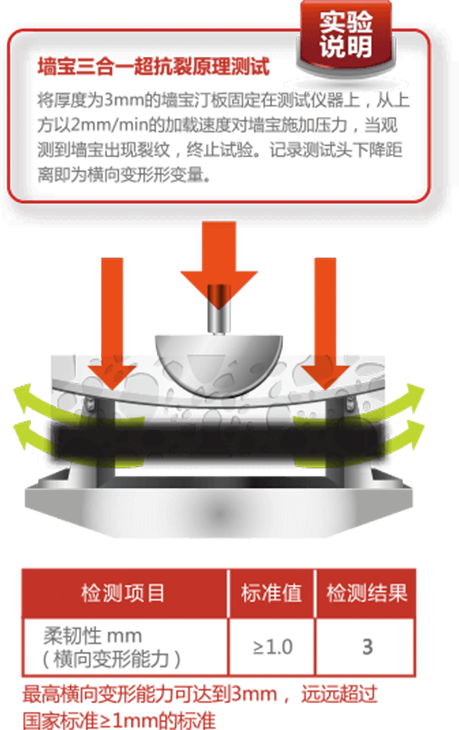 作為墻面系統(tǒng)的核心層,防水抗裂墻寶在抗裂性能上有著顯著的突破提高,從而有效提升產(chǎn)品柔韌性和抗壓強(qiáng)度,遠(yuǎn)遠(yuǎn)超越了傳統(tǒng)墻面底材找平材料。