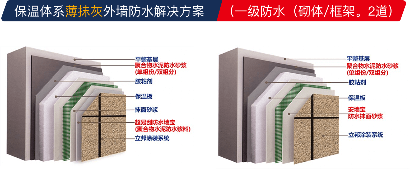 由優(yōu)質(zhì)水泥、特種高分子聚合物、級(jí)配無(wú)機(jī)骨料和特殊添加劑配制而成的單組份聚合物水泥防水砂漿。該產(chǎn)品具有收縮率低、粘結(jié)強(qiáng)度高、耐水耐堿、抗?jié)B性高等特性,適用于建筑物內(nèi)外墻、廚衛(wèi)、陽(yáng)臺(tái)、地下室等部位的防水處理。