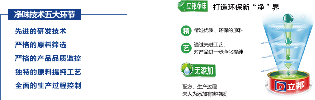 真正的凈味技術(shù)是一套完整的生產(chǎn)體系,立邦從以下五大環(huán)節(jié)全方位嚴(yán)格控制,達(dá)到了真正凈味的效果。
