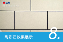 陶彩石藝效果是采用特殊球形高溫?zé)Y(jié)彩砂和高性能乳液配制而成,采用一道批涂施工工藝,表面平滑,性能優(yōu)異,彩砂顆粒清晰,效果新穎,完美展現(xiàn)墻面石材經(jīng)過(guò)精致打磨的真石效果,賦予建筑莊重、典雅、精致奢華的裝飾效果。